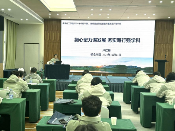 为深入学习贯彻习近平新时代中国特色社会主义思想、贯彻落实党的二十届三中全会、全国教育大会精神,进一步提升学院党员干部队伍的理论水平和履职能力,凝聚合力助推学院事业高质量发展,12月20-21日,化学化工学院党委在开慧镇举办了学院中层干部、教师党支部委员素质能力提升培训班,学院班子成员作专题报告,全体中层干部、教师党支部委员参加。