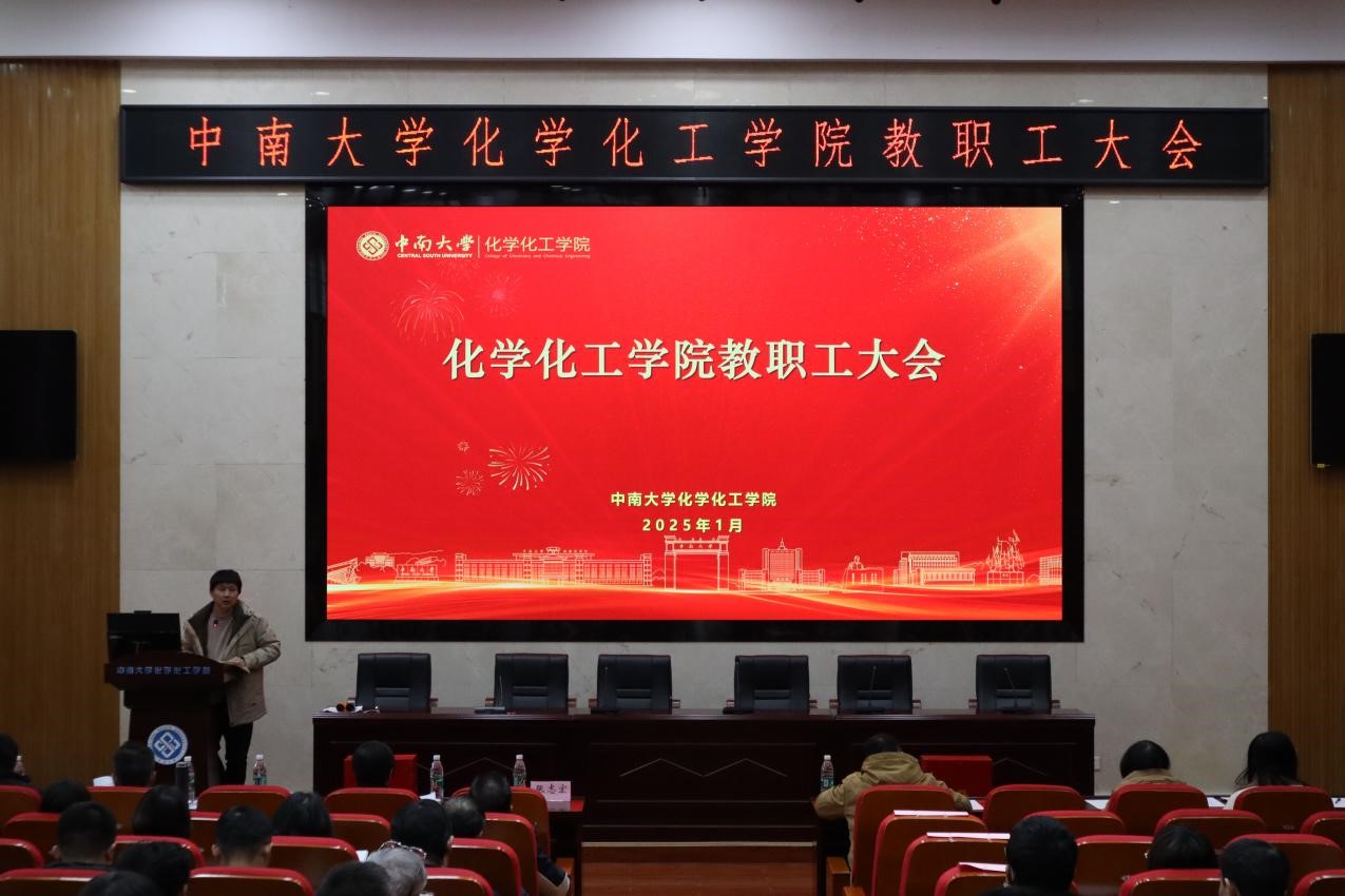 2025年1月16日下午3点,化学化工学院在化学楼133报告厅召开全院教职工大会暨工会会员大会,并进行院领导班子成员2024年度工作述职和民主测评。学校党委组织部副部长张志宏到会指导,学院领导班子成员及全院教职工参加,院党委副书记滕晓雯主持会议。