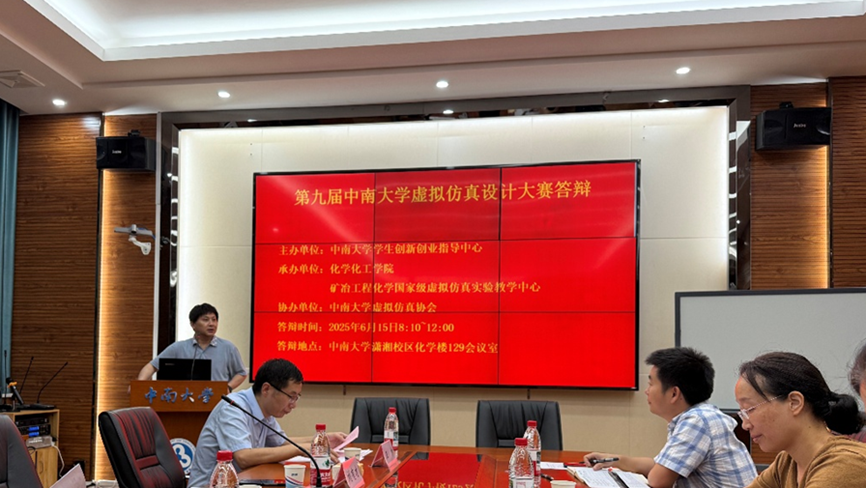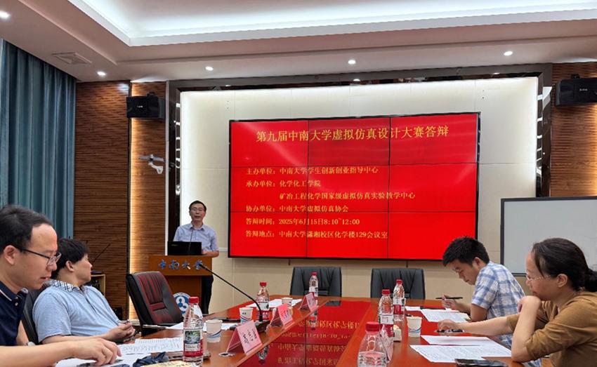 2025年6月15日,第九届中南大学虚拟仿真设计大赛决赛在化学化工学院129会议室举行。化学化工学院刘有才书记出席并致辞,资源加工与生物工程学院副院长高志勇、卓越工程师学院副院长陈爱良、自动化学院王晓丽、化学化工学院谢乐、黄铁骑担任大赛评审专家,矿冶工程化学国家级虚拟仿真实验教学中心常务副主任王帅主持会议,来自全校的9支队伍参加答辩。