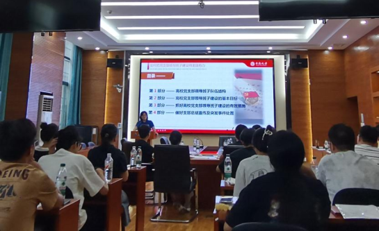 接着,汪菁垚围绕高校党支部领导班子队伍结构、高校党支部领导班子建设的基本目标、抓好高校党支部领导班子建设的有效措施、做好支部总结宣传及突发事件处置等四部分进行详细讲解。汪菁垚详细讲解了发展党员工作流程以党支部换届、补选流程,逐一指导了党支部工作记录本的规范写作,并以冶金物理化学系党支部和研究生制药党支部为范例,详细讲解了如何做好各级各类党建“双创”项目申报和建设工作。