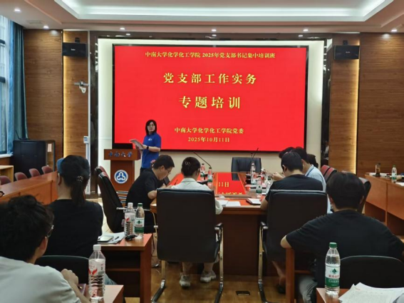 10月11日,化学化工学院党委2025年党支部书记、党务工作者集中培训班在潇湘校区化学楼129报告厅开班,学院党委书记刘有才作开班动员讲话,学院党委专职组织员汪菁垚作党支部工作实务专题培训,全体党支部书记、党务工作者参加。