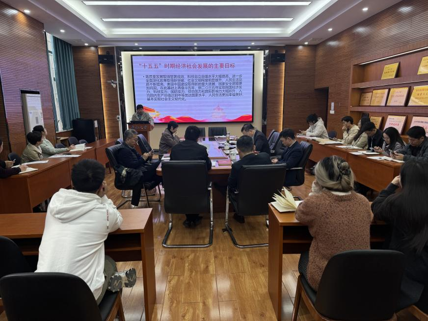 刘有才从深刻认识党的二十届四中全会召开的重要意义,准确全面领会“十五五”时期经济社会发展的指导方针、主要目标、战略任务和重大举措等方面,围绕“因势而谋”的新方案、“应势而动”的新指南、“乘势而上”的新蓝图、“顺势而为”的新担当四个部分,结合学院实际进行了深入阐释和解读。