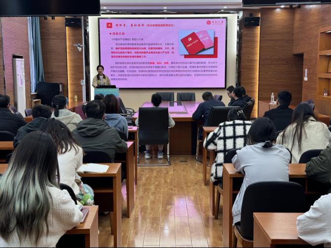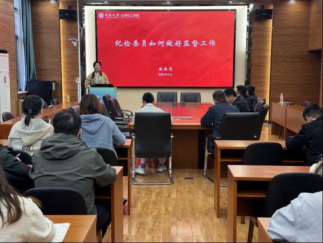 为贯彻落实校纪委关于开展党风廉政宣传教育月的通知精神,提升我院党支部纪检委员履职能力,推动全面从严治党,11月28日下午,化学化工学院党委在潇湘校区化学楼129报告厅开展党支部纪检委员专题培训,院党委副书记、纪检委员滕晓雯主讲,全体党支部纪检委员参会。