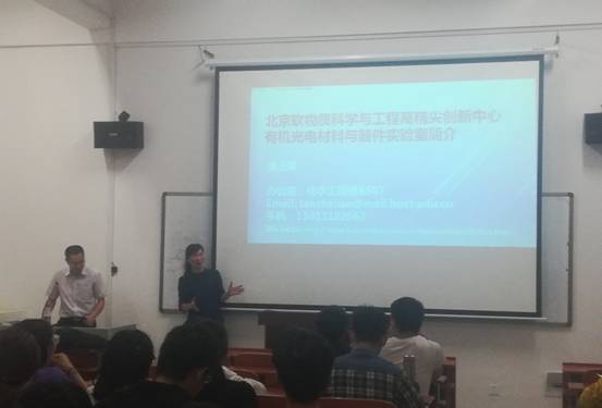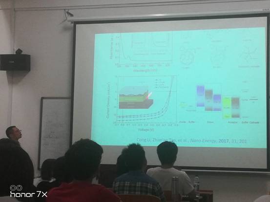 报告会上,谭占鳌教授系统讲述了其课题组在软物质科学,尤其电极界面电子转移的调控策略方面的研究工作。谭占鳌教授主要介绍了太阳能电池材料的三明治结构、优化等相关问题。总结了近几年太阳能电池材料改性的发展,并重点提到有机碳电池材料的发展前景。