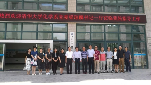 6月28日,清华大学化学系党委书记梁琼麟一行到我院交流党建工作。上午9时许,清华大学化学系党委委员,研究生工作组组长冯琳,党委委员、化学系物化所所长、化学学堂班项目主任焦丽颖,党委委员、党办主任时燚,化学系系办主任宋瑞芝,化学系无机所党支部书记魏永革,化学系学生党建组织员梁岑在梁书记的带领下来到学院会议室。学院党委书记马跃如、党委副书记刘有才、院长刘又年、党委委员副院长卢红梅、副院长阳华、副院长宋相志、院办主任朱敏以及无机化学系副主任颜军和冶金物化系党支部书记胡久刚等参加交流会谈。