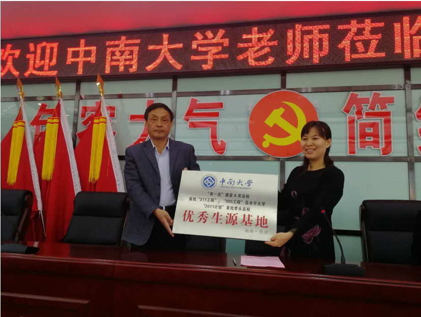 中南大学-张掖二中共建“中南大学优秀生源基地”