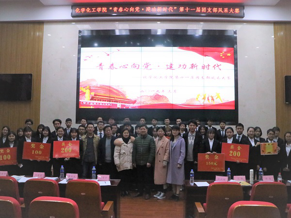3月24日下午,化学化工学院“青春心向党,建功新时代”第十一届团支部风采大赛在新化学楼133报告厅圆满举行!经过激烈紧张的初赛选拔,本科2017、2018级共有十二个优秀的团支部突出重围,晋级决赛。院党委刘有才副书记、关工委常务副主任冷帜明老师、关工委副主任蒋利武老师、院分团委书记范帆、兼职团委副书记杨佳、17级辅导员刘世宏、18级辅导员华绪雨和学工办老师赵元超担任本次大赛的评委。各团支部成员积极参与观看比赛,现场气氛浓厚,座无虚席。