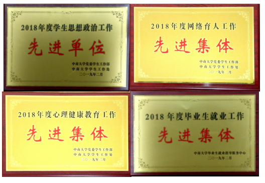 近年来,学院学生工作按照校党委统一部署,在学工部以及学院党政的正确领导下,立足学院标杆党委建设标准,坚持立德树人总目标,以社会主义核心价值观为引领,以提升德育针对性实效性和思想政治工作质量为目标,以实施素质教育为抓手,着力培养德智体美全面发展的社会主义建设者和接班人。在夯实基础学生工作,抓牢重点工作的前提下,积极打造特色工作,努力探索新形势下开展学生工作的新思维、新办法和新作为。在思想教育上,认真贯彻全国教育大会精神,加强学生理想信念教育,组织学生开展“不忘初心跟党走 青春建功新时代”知识竞赛等。在学风建设上,各年级结合自身实际情况,采取了行之有效的措施,极大地促进了我院优良学风的形成。我院学风建设模式的得到了学工部的高度肯定,“化语”学业互助辅导室的模式也面向全校进行推广。在资助工作方面,学院坚持“精准资助”与资助育人相结合,开展假期家访、定期谈心谈话、一人一策帮扶等,取得一定实效。创新创业方面2018年我院本科生参加的创新创业项目立项40项,参与发表论文6篇、专利4篇,参加国际级、国家级、省级各类创新创业、学科竞赛获奖共计55项。就业工作方面,组织了“来自学长学姐的职场建议”、“名师讲堂”、求职能力提升等活动,更好的为学生就业服务,学院就业率达98%。心理健康教育方面,持续做好重点关心学生工作,持续开展开展团体心理辅导、案例分析、心理委员培训班等。网络育人方面,依托“中南化语轩”微信公众号、腾讯QQ空间和“中南大学化工院团委”微博三大新媒体平台的建设和易班APP对学院新闻、学院通知、学生工作等资讯进行及时的发布。在辅导员专业化职业化方面,学院积极组织辅导员参加培训,不断提升辅导员工作能力。