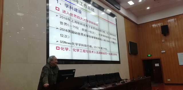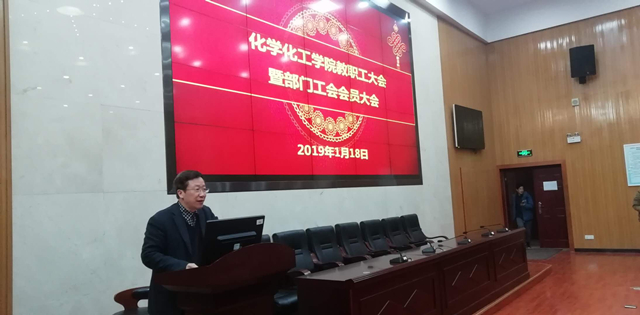 1月18日下午,学院在新校区化学楼133报告厅举行教职工大会暨部门工会会员大会。全体院领导出席。院党委书记马跃如致开幕词并作工会工作报告;院长钟宏作教代会工作报告;副院长刘又年作实验室工作报告。院党委副书记刘有才主持会议。