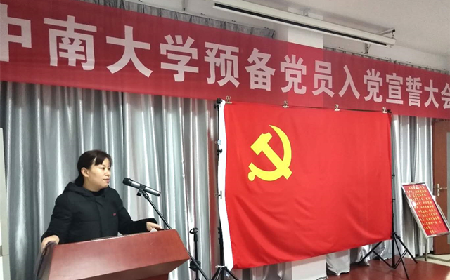 12月26日,化学化工学院党委在中南大学党委党校入党宣誓教育基地举行预备党员入党宣誓大会。院党委委员朱敏出席并致辞,组织员李璞和74名预备党员参加。会议由发展对象培训班班导师范帆主持。