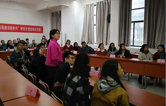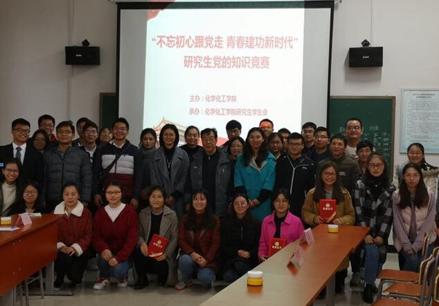 潇湘秋雨渐微凉,红心炽暖跟党走。为深入学习贯彻习近平新时代中国特色社会主义思想和党的十九大精神,积极推进“两学一做”学习教育常态化,引领广大研究生党员不忘初心、牢记使命,化学化工学院于11月14日12:30-14:30在新校区化学楼129室举办了以“不忘初心跟党走 青春建功新时代”为主题的研究生党的知识竞赛。