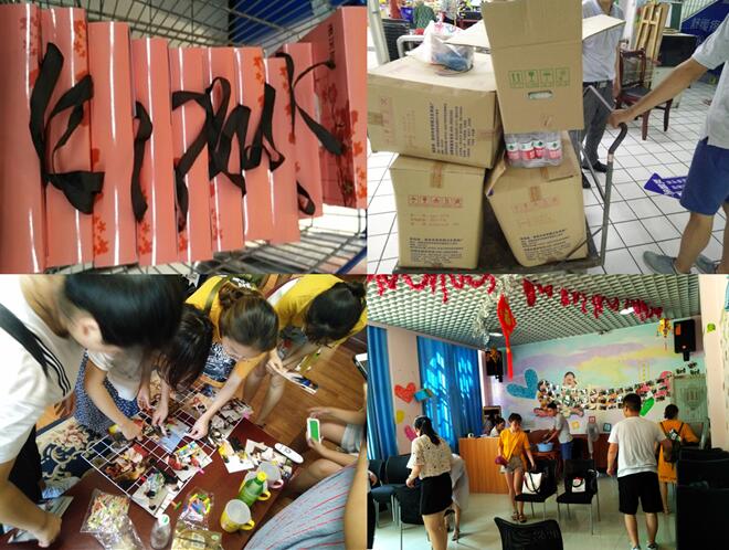 长沙市第二社会福利院隶属于长沙市民政局的副县级事业单位,集中供养残障“三无”民政对象,主要承担孤残儿童、失智失能老人和残障人士的收养、安置、医疗、康复等工作。当天下午一点抵达福利院后,慰问组成员首先在幸福社工园进行了义务劳动,清洗整理了老人们的桌椅,将活动室窗台地面打扫干净。随后,在福利院李老师的带领下,参观了“类家庭养育”主要场所——幸福家园。“类家庭养育”是福利院创新的一种不同于集体生活的养育方式,在“寄养家庭”中,这些特殊的孩子们感受到了普通父母一样的关爱和温暖,身体、情感、智力成长的更加健康。类家庭养育还针对几个身体精神状况比较好的孩子,通过特殊课程引导他们逐步建立起正常生活自理意识。通过交流和互动,大家感受到福利院并不是仅仅的收养、安置、医疗、康复的场所,更是授人以渔的幸福之园。在福利院,组员们与孩子们度过了愉快的时光,并帮忙装饰了幸福照片墙,福利院的老师们则用拍照的方式记录了孩子们最纯真的笑容和最真实的感受。最后,慰问组成员与福利院工作人员共同举行了物资捐赠仪式,将慰问品赠予福利院的老人和小孩,并衷心祝福孩子们幸福快乐成长、老人们安享晚年。