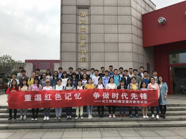 为深入贯彻落实十九大精神,引导新一期发展对象树立坚定理想信念,化学化工学院党委分党校第5期发展对象培训班学员于4月21日赴湖南党史陈列馆,开展以“重温红色记忆,争做时代先锋”为主题的党性教育实践活动。