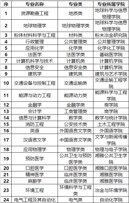 2020年度中南大学国家级一流本科专业建设点名单