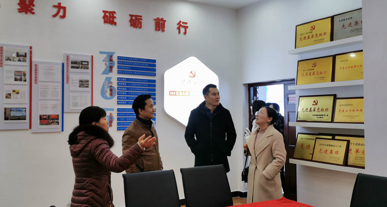 来访嘉宾先后参观了学院文化长廊、党员活动室、学生党建服务中心和“双带头人”教师党支部书记工作室、成长辅导室等。朱敏向来访者详细介绍了学院党委近年来在增强工科学院文化氛围、提升学生党建服务质量等方面采取的有效举措和取得的丰硕成果。