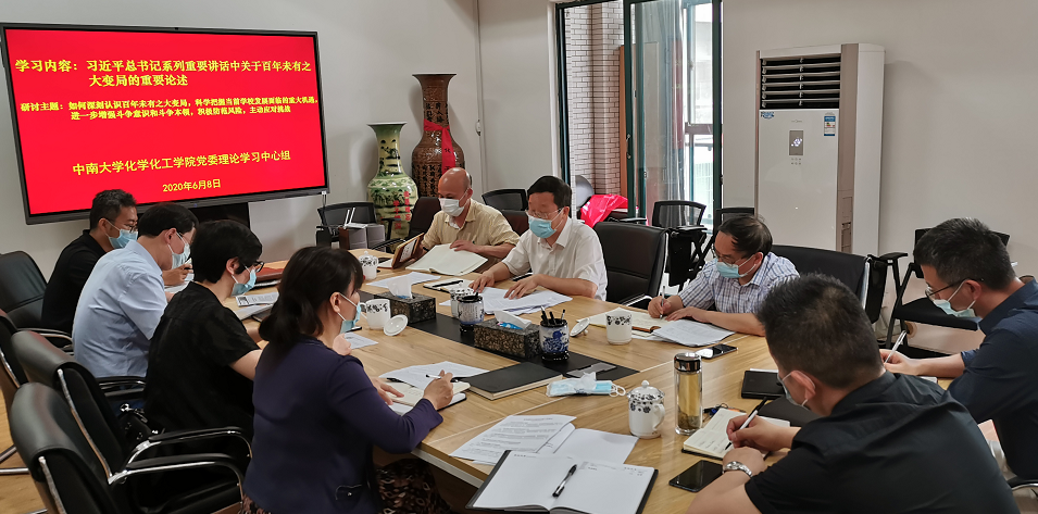 6月8日,学院党委理论学习中心组在新校区化学楼229会议室召开专题学习研讨会,集中学习领会习近平总书记关于百年未有之大变局的重要论述并开展交流研讨。院党委书记马跃如主持会议,院党政班子成员、党委委员参加会议。