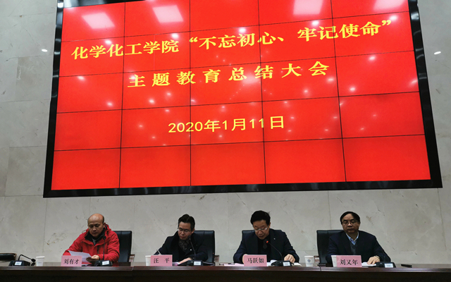 1月11日上午,学院在新校区化学楼133报告厅召开“不忘初心、牢记使命”主题教育总结大会。院党委书记马跃如作主题教育总结报告,强调要聚焦主题主线,认真梳理经验,保持昂扬斗志,持续推动主题教育常态化长效化。校党委主题教育第五指导组副组长汪平出席会议并讲话,指导组成员涂图到会参加指导。院党委副书记刘有才主持会议。