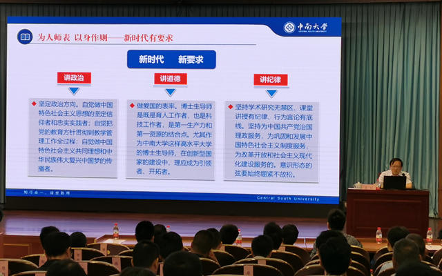 易红从党的十八大以来,习近平总书记关于党和人民满意的好教师需要的四有”“四个引路人”“四个相统一标准出发,围绕立德树人,就师德师风和培养质量两方面进行了重点阐述。他强调,导师是培养质量第一责任人,导师要做到为人师表、以身作则、关爱学生、严慈相济、严谨治学、潜心问道,新时代导师一定要讲政治、讲道德、讲纪律,引导研究生爱国爱民、奋斗担当、勤奋求学、修身养性,做研究生成长成才的指导者和引路人。他还针对导师资格认定、生源质量、论文选题、课程建设、质量保障以及责任追究等提出新要求。