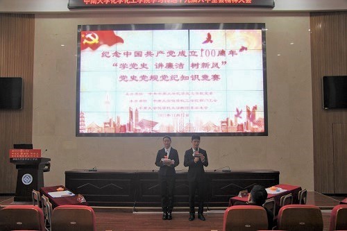 为深化党史学习教育,加强党风廉政宣传教育,在全院营造积极进取、风清气正良好氛围,11月17日下午,学院党委在新校区化学楼133报告厅成功举办“学党史 讲廉洁 树新风”党史党规党纪知识竞赛。全院8个教师党支部与20个学生党支部参加比赛。院党委书记罗永忠、副书记刘有才出席活动。