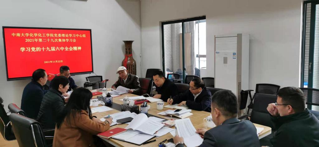 11月22日,化学化工学院党委理论学习中心组召开2021年第二十九次集体学习会,专题学习党的十九届六中全会精神。院党委书记罗永忠主持会议并作中心发言。中心组全体成员参加学习。