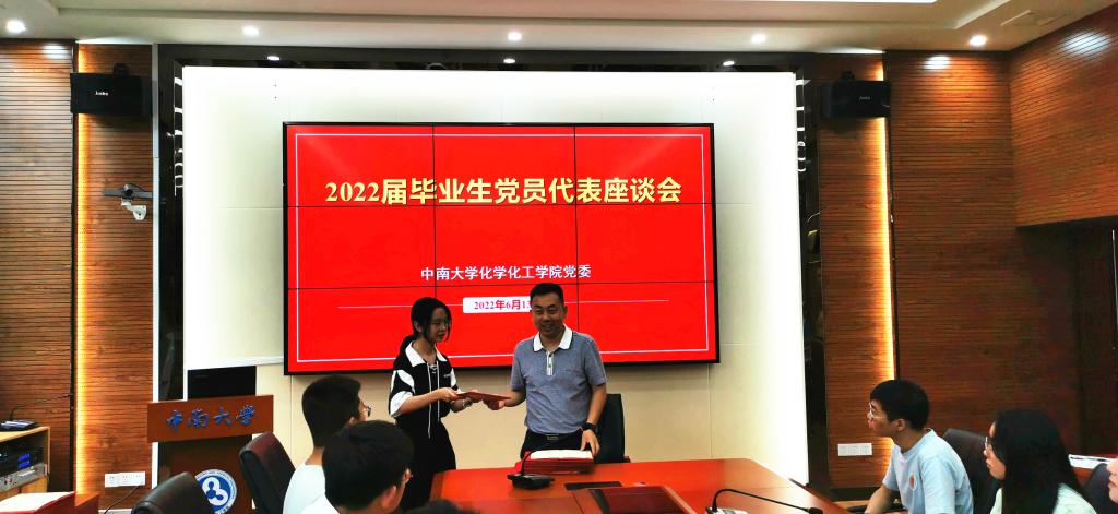 6月13日下午,学院党委在新校区化学楼129会议室召开2022届毕业生党员代表座谈会。院党委书记罗永忠、院党委委员李璞、宣传干事汪菁垚及33名毕业生党员代表参加座谈会。罗永忠主持会议。