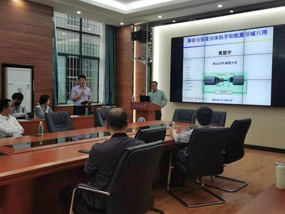 黄教授以“原位电镜在纳米科学和能源领域应用”为题,介绍了原位透射电镜-探针显微镜(TEM-SPM)原位测试平台的结构,指出了利用电镜原位观察电池体系反应过程的关键问题,随之讲述了课题组利用原位电镜在锂离子电池硅负极、固态锂金属电池、钠金属电池等领域取得的突破性进展,强调了在锂、钠在纳米尺度下的特质对电池性能的影响。黄教授的创新性研究改变了以往学术界对固态锂金属电池中锂枝晶的生长方式及电池失效方式的传统观点,即纳米尺度下的锂金属应力极强,足以刺穿固态电解质,而非传统观点中锂沿着固态电解质的晶界生长。