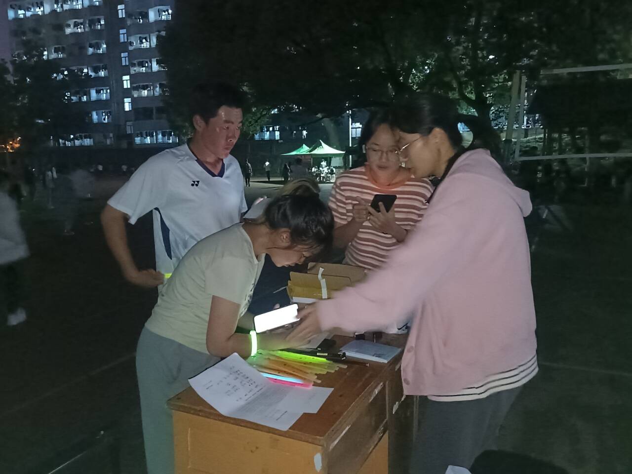 10月14日晚,启动仪式在新校区体育场拉开序幕,院团委书记谭澳利出席仪式。体育部干事黄灿讲解了活动规则和注意事项:每一位参加活动的同学都能获得一份夜跑任务卡,每跑完一次可以打卡盖章,跑步前可以交给值班志愿者保管。参与活动即可获得定制荧光手环,参与荧光夜跑,累积打卡达到一定次数即可领取对应奖品。同时体育部也提醒大家在体育锻炼之时也要注意自己的身体情况,避免运动受伤。