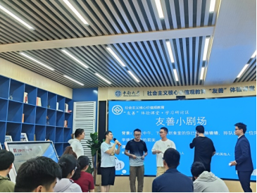 6月16日,学院党委组织博士生化工与分化党支部、博士生化学第二党支部、硕士生分化第二党支部全体党员赴毓秀楼107友善厅参与中南大学“友善”体验课堂听课。本次课堂以"友善"为核心,通过一系列精心设计的互动环节,深化同学们对友善精神的理解。通过生动的情景再现,党员们围绕友善的内涵、意义等话题进行深入讨论,共同探索友善精神的丰富内涵。