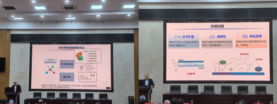 非天然氨基酸是一类不受遗传密码子约束的特殊氨基酸,它们具有独特的空间构型和化学性质,为多个领域提供了新的资源和机会.当前,非天然氨基酸可以通过化学合成和生物合成两种方式合成,其中相较于化学合成,生物合成具有更高的效率和立体选择性、更低的成本和污染,是一种有潜力的合成方式,本次报告中杨立荣教授为我们介绍了有关非天然氨基酸合成的方法及进展。