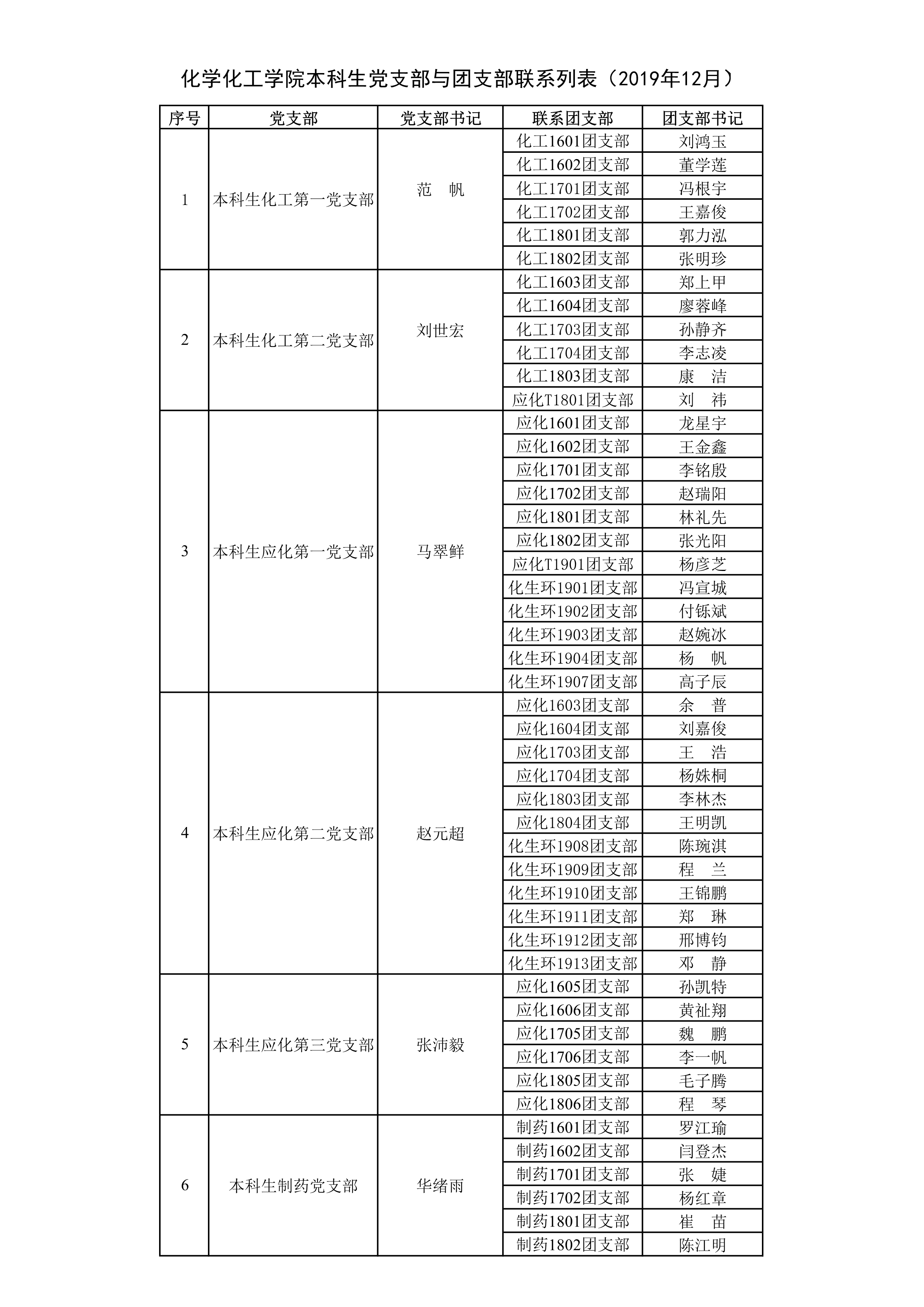 化学化工学院本科生党支部与团支部联系列表(2019年12月)