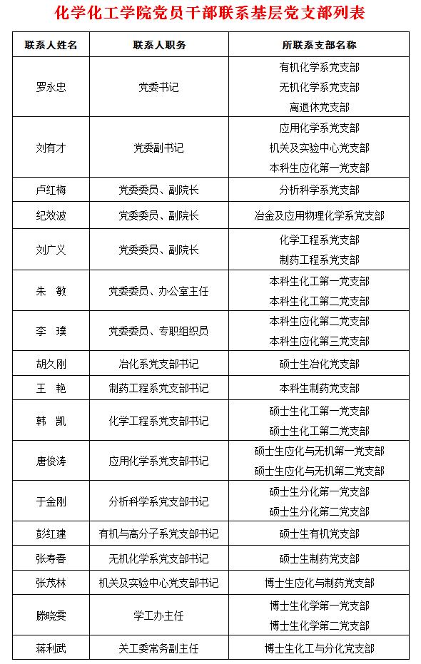 化学化工学院党员干部联系基层党支部列表(2021年1月更新)
