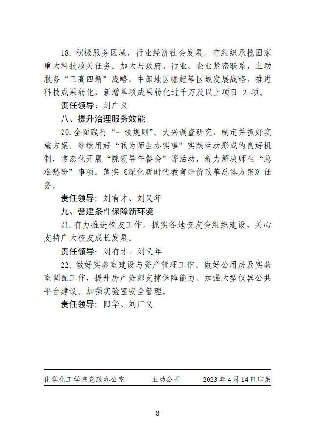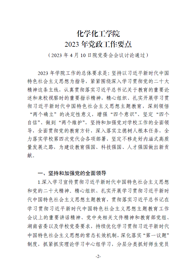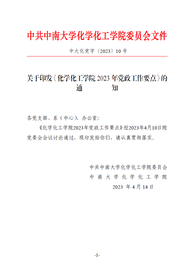 关于印发《化学化工学院2023年党政工作要点》的通知
