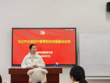 会议伊始,王艳同志系统领学了习近平总书记关于总体国家安全观的重要论述。她结合当前国际形势与国内发展需求,强调要深刻领会"以人民安全为宗旨,以政治安全为根本" 的核心要义,将国家安全意识融入日常学习与科研实践,切实履行新时代青年党员的使命担当。