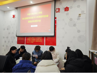 2025年3月11日上午9点,硕士生制药党支部在化学楼132党员活动室召开3月份党员大会暨组织生活会,会议由支部书记凌卉同志主持,支部正式党员及预备党员共20名同志参会。