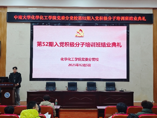 中南大学化学化工学院第52期入党积极分子培训班结业典礼顺利举行
