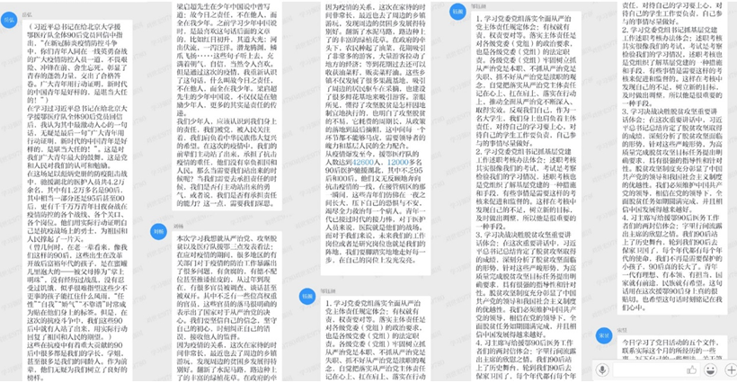 习近平总书记在回信中写道,广大青年用行动证明,新时代的中国青年是好样的,是堪当大任的!岳弘同志表示,这是对我们广大青年最大的鼓舞,这是党和人民对我们的认可和勉励,这更多的是一种责任的传递。抗疫中有着重大贡献的90后中很多都是我们的学长学姐,甚至同龄人,他们为我们树立了良好的榜样。我们少年人,应该认识到我们身上的责任,肩负着中华民族伟大复兴的希望。李梦璐同志说,作为当代大学生,虽然我能力有限,但并不代表我不作为,面对疫情,我学会用自己的方式为祖国分忧。在努力学习好专业知识,做好本分工作的同时,关注动态,做到不信谣不传谣,关注官方信息,用科学的理论武装头脑,开导身边的长辈,主动了解身边同学的情况,对有需要的同学及时伸出援助之手,学习冲锋一线的战士们,以他们为榜样,激励自己不断前行,用实际行动献出自己的一份微薄之力。