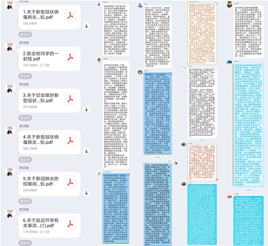 首先,黄润敏同志向大家宣扬了习近平总书记关于疫情防控工作的指示精神,并带领大家学习了教育部、省委省政府以及学校的各项相关决策部署相关文件,支部成员在线依次发言并积极分享心得体会。