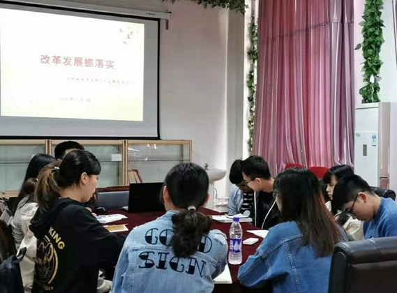 会上,支部全体党员围绕“改革发展抓落实”主题积极发言交流,为学院发展建言献策,为将来的学习生活制定计划,并结合支部近期开展的关于党员对照党章党规检视问题的主题教育活动进行自我剖析,对自身存在的问题提出相应的解决措施。在抓落实方面,支部成员普遍觉得自己的理论知识学习还很不够,提出以后要更加认真的学习学习强国APP中的知识,并且积极学习《习近平关于“不忘初心,牢记使命”论述摘编》《习近平新时代中国特色社会主义思想学习纲要》《中国共产党章程》等三本学习教材。有不少同志反应自己在日常工作和学习中或多或少存在畏难心理,没有很好的发挥党员的带头作用,以后应该努力克服,积极参与各项活动。