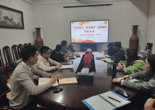 10月31日晚上,按照校院两级党委“不忘初心、牢记使命”主题教育工作部署安排,本科应化第二、三党支部在化学楼229会议室开展主题教育学习活动。院党委委员、专职组织员李璞为联系支部本科应化第二和第三党支部全体党员讲专题党课。