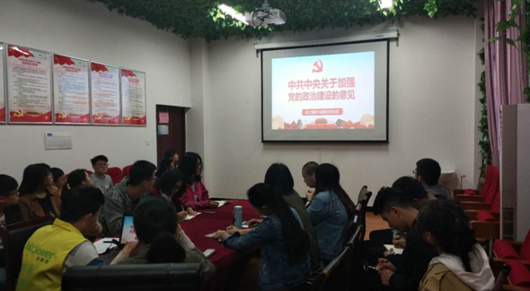会议指出,党的十九大明确提出党的政治建设这个重大命题,强调党的政治建设是党的根本性建设,要把党的政治建设摆在首位,以党的政治建设为统领,全面推进党的各项建设。《意见》和《条例》的出台对于坚决维护习近平总书记党中央的核心、全党的核心地位,坚决维护党中央权威和集中统一领导,保证全党团结统一和行动一致,具有重要意义。会议最后,支部全体党员同学一起观看两会相关视频,学习两会精神。