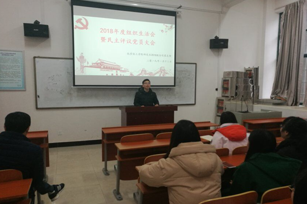 2019年1月12日下午,研究生2018级分化党支部在新校区化学大楼123教室召开2018年度组织生活会暨民主评议党员大会。分化支部12名党员同志参加大会,联系教职工党员分析科学系党支部书记蒋新宇同志到会指导并作点评。会议由支部书记陈阳同志主持。
