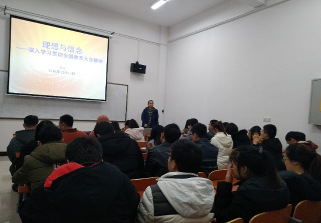 周涛同志围绕六新“新判断、新表述、新要求、新措施、新加强、新应对”多角度深入解读了习近平总书记在全国教育大会上重要讲话的丰富内涵,详细阐释了全国教育大会精神对大学生思想政治教育工作的现实指导意义。他谈到,“新工科”需要对传统工科专业进行重构,是下一轮高等教育改革的先行者、探索者和引领者。相对于传统的工科人才,未来新兴产业和新经济需要的是实践能力强、创新能力强的人才。面对“新工科”热潮,周涛同志要求全体研究生党员要勤奋学习,不断成长,以成为创新性和高素质人才为奋斗目标。