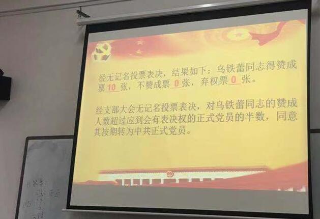 根据最终投票表决结果统计,此次党员大会一致同意将乌铁蕾、余沙、耿娅妮、王可可、郭天啸、李雨婷六位同志转为中共正式党员。