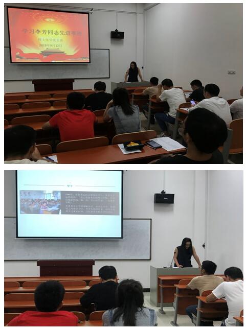 为了大力学习宣传李芳同志先进事迹,贯彻落实关于深入开展向李芳同志学习活动的通知,弘扬高尚师德师风,9月12日晚,博士化学党支部全体党员于新校区化学化工学院125教室开展了关于“学习李芳同志先进事迹”的主题党日活动。会上每个党员同志都和大家分享了前段时间的学习体会,并结合自身经历谈了谈思想心得。