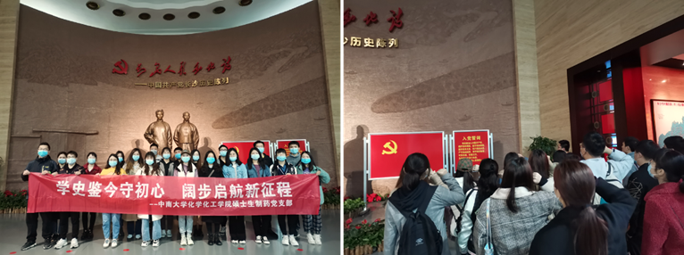 4月11日上午,硕士生制药党支部赴中国共产党长沙历史馆开展党史学习教育“学史明理”第一专题学习活动,全体党员参观了中国共产党长沙历史陈列,重温这一段波澜壮阔的历史。