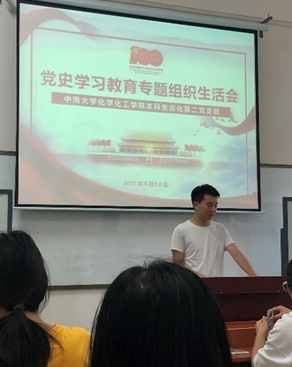 2021年6月20日下午3时,本科生应化第二党支部在化工楼124教室学习了由支部书记赵元超同志讲授党史学习教育专题党课,并开展了党史学习教育专题组织生活会。