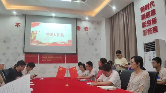 随后,召开党员大会。三位预备党员分别就自己预备期内思想、学习、工作等的表现进行汇报。全体参会正式党员进行无记名投票表决。根据投票结果,高柱书记宣布大会决议,通过了乐秀秀、邢雪建及童霞三名同志的转正申请,同意其转为正式党员。现场参会人员鼓掌表示祝贺。