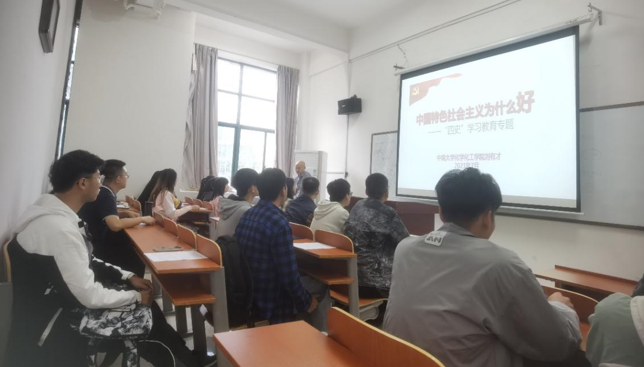 2021年10月12日下午4时,学院党委副书记刘有才同志在126教室为本科生应化第一党支部全体党员讲授“四史”学习教育专题党课。