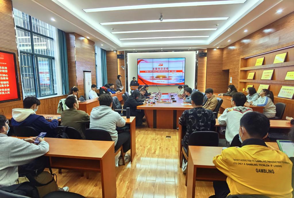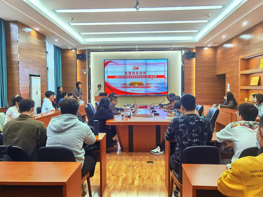 2022年11月25日下午3时,本科生化工第一党支部在化学楼129初心讲堂开展11月份主题党日活动。支部书记肖茜斤主持活动。联系支部的校党委党校常务副校长、组织部副部长赵永正讲授专题党课,联系支部的院党委委员、办公室主任朱敏同志到会指导,院党委委员、专职组织员李璞同志,专职组织员汪菁垚同志列席参加,支部全体党员、发展对象、入党积极分子代表参加活动。