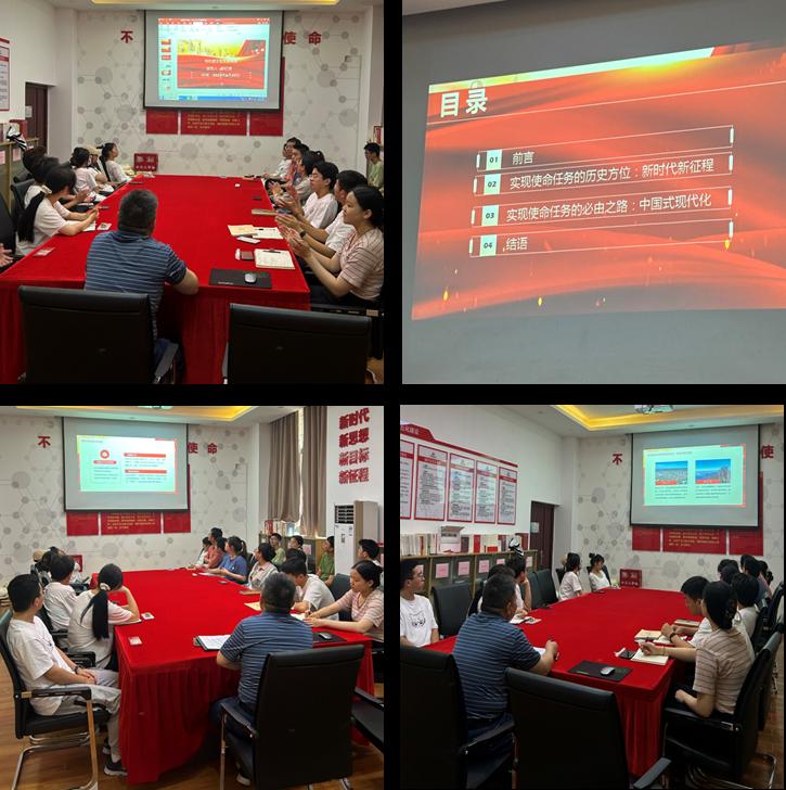 本次党课彭老师主要从四个部分来讲授。在第一部分,彭老师为我们介绍了习近平总书记在党的二十大报告中所阐明的新时代新征程道路上中国共产党的使命任务为“团结带领全国各族人民全面建成社会主义现代化强国、实现第二个百年奋斗目标,以中国式现代化全面推进中华民族伟大复兴。”在第二部分,同志们通过彭老师的讲授知悉了我国在新时代所取得的伟大成就以及在新征程道路上所面临的风险和挑战,从而提醒自己即使面对前路艰险,也要以坚毅顽强之心应对。